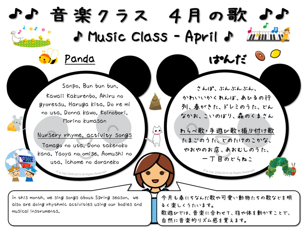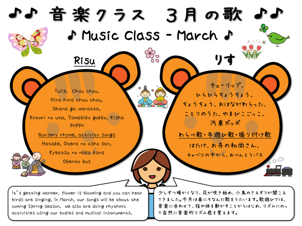 Monthly song list for each preschool class.